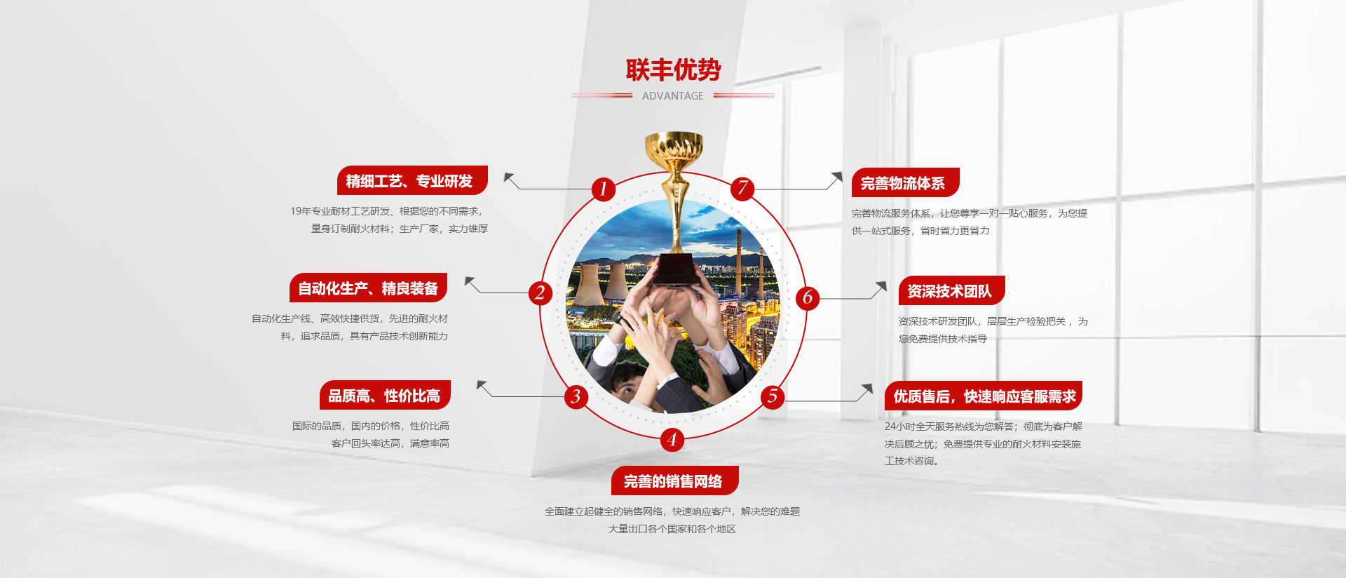 鄭州聯(lián)豐窯爐特種材料有限公司位于鄭州腹地新密市境內(nèi),東臨鄭州國(guó)際機(jī)場(chǎng),西傍中岳嵩山,處于京廣、隴海鐵路交匯中心,交通便利,境內(nèi)鋁礬土、煤炭?jī)?chǔ)量豐富,為生產(chǎn)耐火材料提供了得天獨(dú)厚的優(yōu)越條件。 我公司以生產(chǎn)各種耐火定型、不定型材料、澆注料及特種材料和耐熱預(yù)制件為主,聘請(qǐng)窯爐技術(shù)人員,注重耐材砌筑施工,使整個(gè)企業(yè)產(chǎn)品系列化,為客戶(hù)提供全方位整套服務(wù)。...